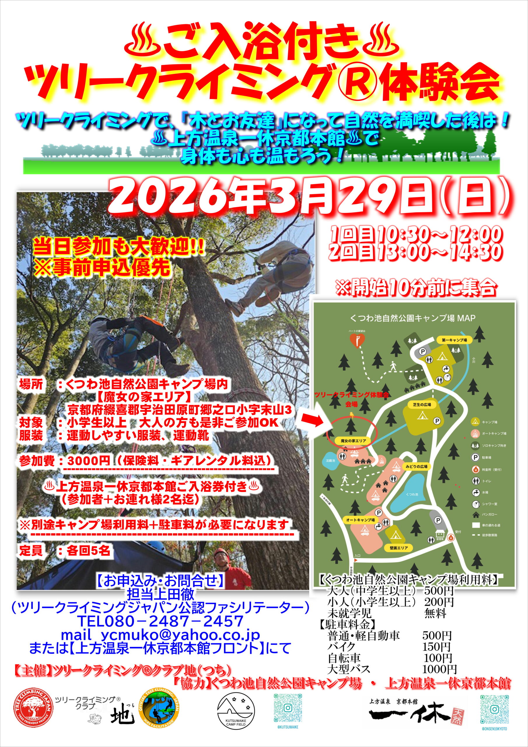 2026年3月29日(日)京都府宇治田原「くつわ池キャンプ場」ツリークライミング®クラブ地(つち)詳細はこちら